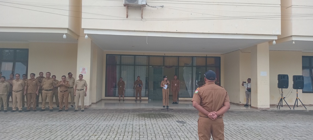 Penegasan tersebut ia sampaikan saat memimpin apel gabungan, Senin, 8 Desember 2025 pagi tadi di Kantor Bupati.