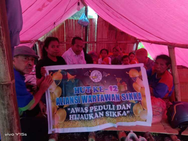 NTTKreatif.com, Maumere – Aliansi Wartawan Sikka atau AWAS Sikka menyerahkan bantuan sosial berupa paket sembako kepada korban kebakaran rumah di RT 07/RW 04, Dusun Wolon Gerat, Desa Heopuat, Kecamatan Hewokloang, Kabupaten Sikka, Kamis (12/2/2026) sore kemarin..
