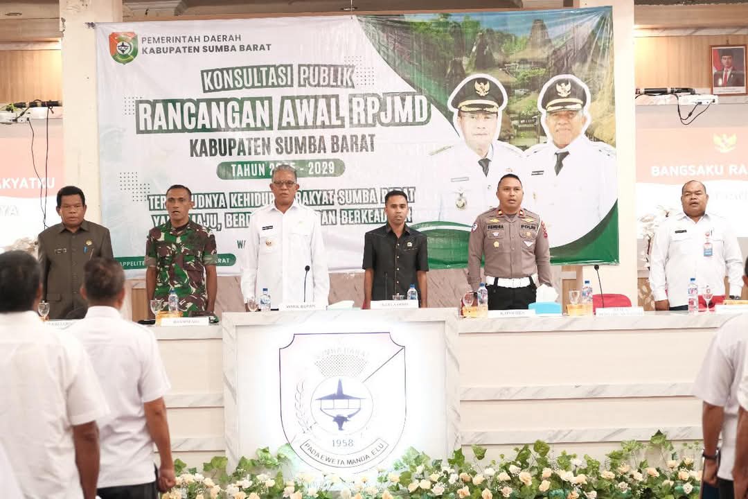Wakil Bupati Sumba Barat, Thimotius Tede Ragga didampingi Sekda Sumba Barat, Yermia Ndapa Doda bersama Kepala Bappelitbangda, Titus Diaz Liurai, secara resmi membuka Forum Konsultasi Publik Rancangan Awal RPJMD Tahun 2025–2029.