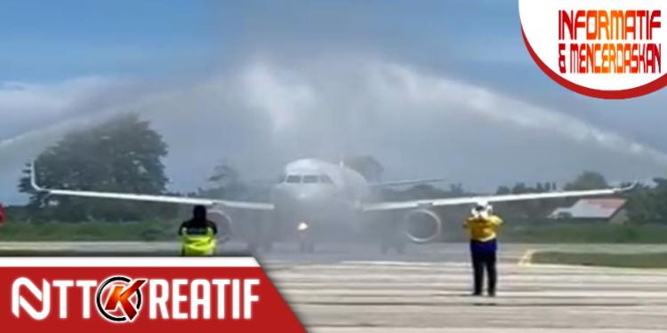 Pantauan nttkreatif.com, pesawat Batik Air dengan mesin pesawat jet generasi modern Airbus A320, dengan 12 kursi kelas bisnis dan 144 kursi kelas ekonomi itu landing sekitar pukul 10.55 WITA dan langsung diterima dengan water canon.
