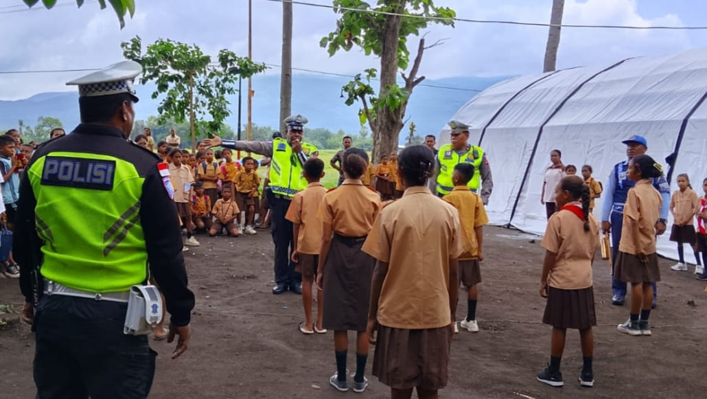 NTTKreatif.com, Larantuka Satuan Lalu Lintas (Satlantas) Polres Flores Timur melalui Unit Keamanan dan Keselamatan (Kamsel) kembali melaksanakan program Police Go To School dengan menggelar sosialisasi keselamatan dan tertib berlalu lintas di SDN Ceria Bawalatang Konga, Kecamatan Titehena, Kabupaten Flores Timur, Sabtu (10/1/2026).