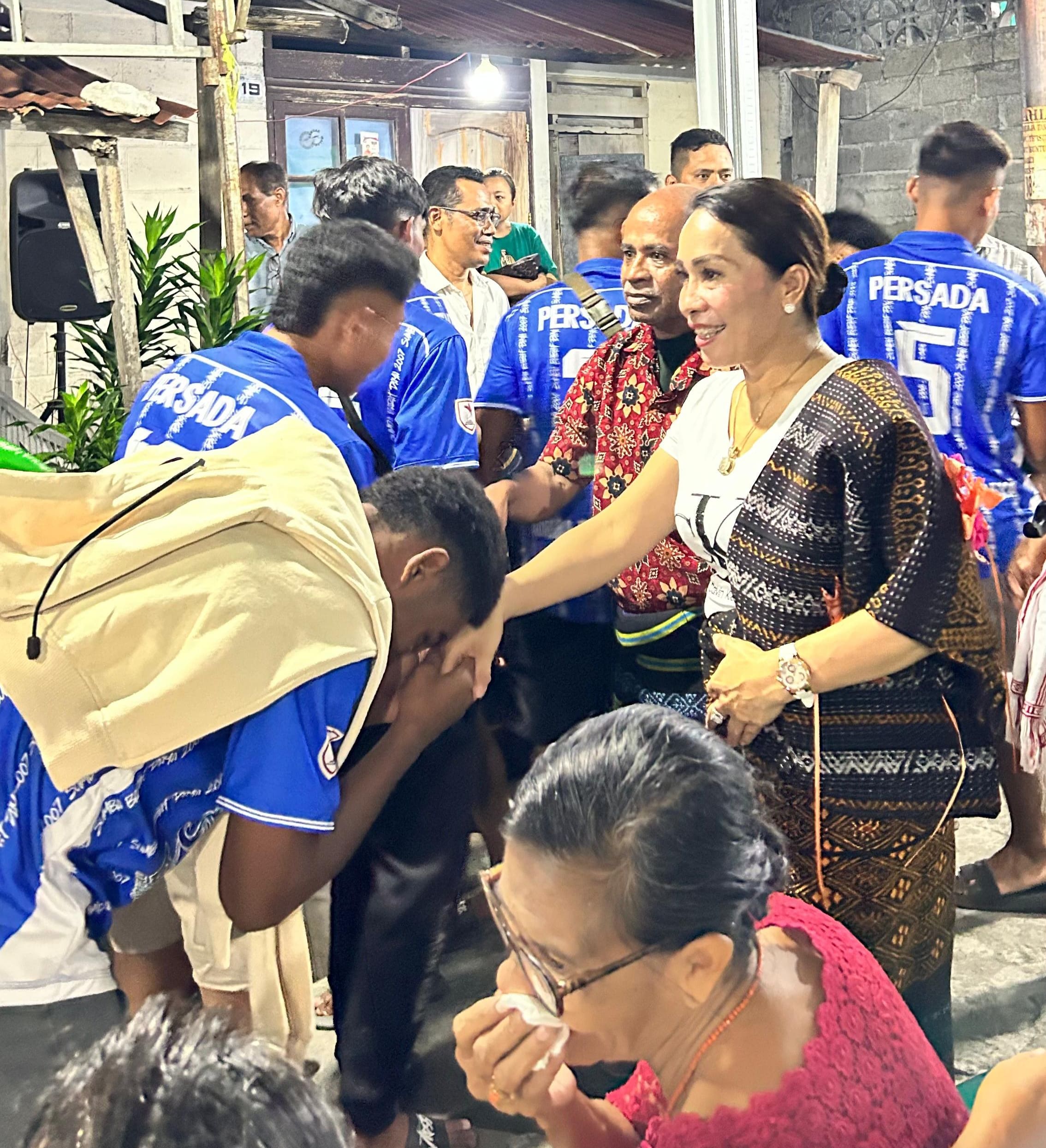 NTTKreatif.com, Ende – Usai melepas para pemain Persada SBD, Kamis pekan lalu di SBD untuk bertolak ke Ende guna mengikuti Liga 4 ETMC 2025 di Ende, Bupati SBD, Ratu Wulla Talu kembali bersua dengan para pemain Persada, Sabtu, 8 November 2025 sore lalu jelang pembukaan ETMC di Stadion Marilonga.