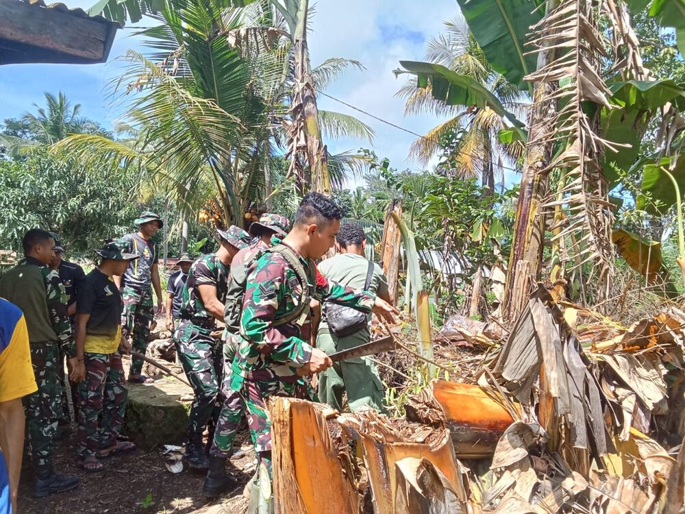 Pengerjaan MCK tersebut dilaksanakan secara gotong royong oleh personel Satgas bersama masyarakat setempat.